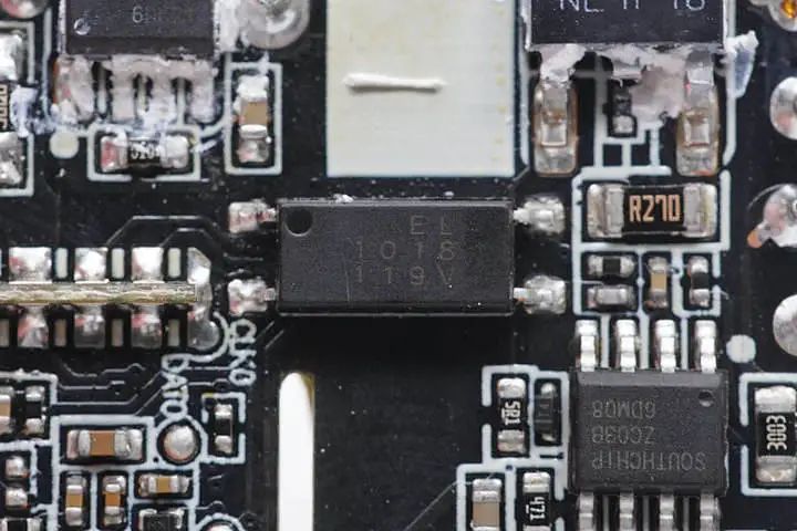 同樣使用了億光光耦的充電頭不在少數,比如紫米33W 1A1C雙口快充充電器,在拆解后仍然能發現EL1018光耦。