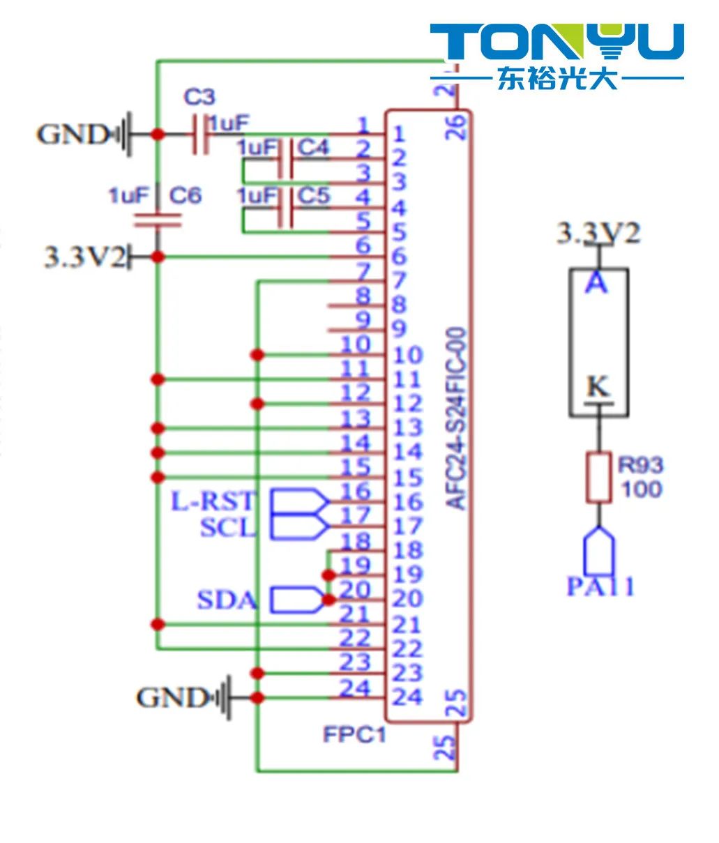 4、接口簡單方便:可采用 4 線 SPI 串行接口、并行接口,I2 C 接口。