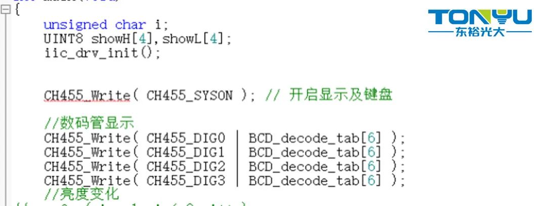 首先建立好 I2C 通信,然后用 CH455G_Write寫地址點亮數碼管。
