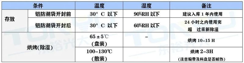 一般編好帶的LED燈珠除濕條件要根據廠家采用的載帶、卷盤來定,因為一般的載帶、卷盤耐受溫度較低,容易高溫烘烤后會導致變形,使LED卡在載帶、卷盤里出不來,無法使用貼片機作業。