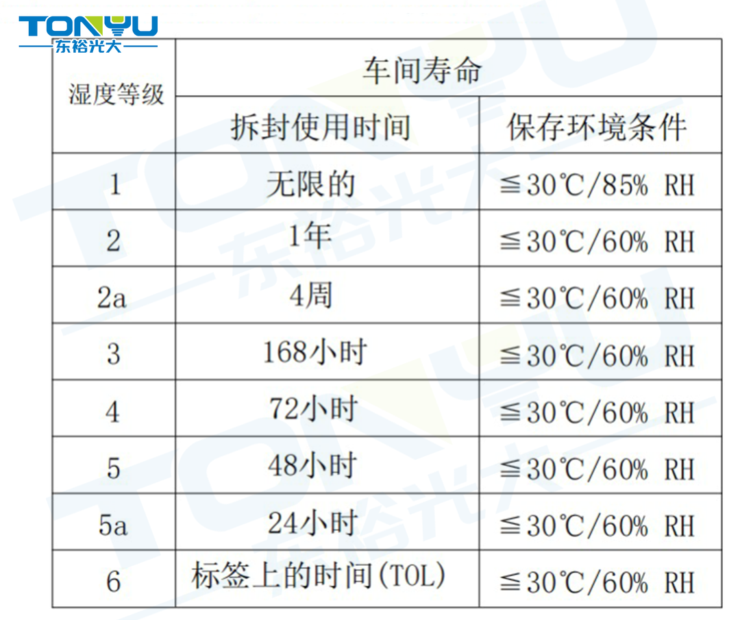 LED 器件在拆封使用時請按器件濕敏等級進行處理: