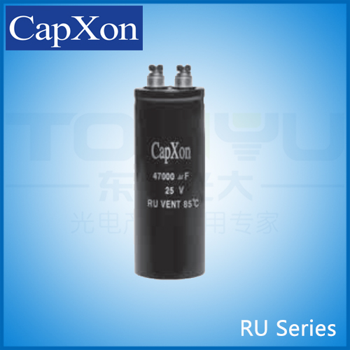 RU | Screw type | Useful life 12000hours, High ripple current | -25 ~ 85 | 500 | 820 ~ 10000 | I leak = 0.018 * (C*V)0.85 + 4μA |