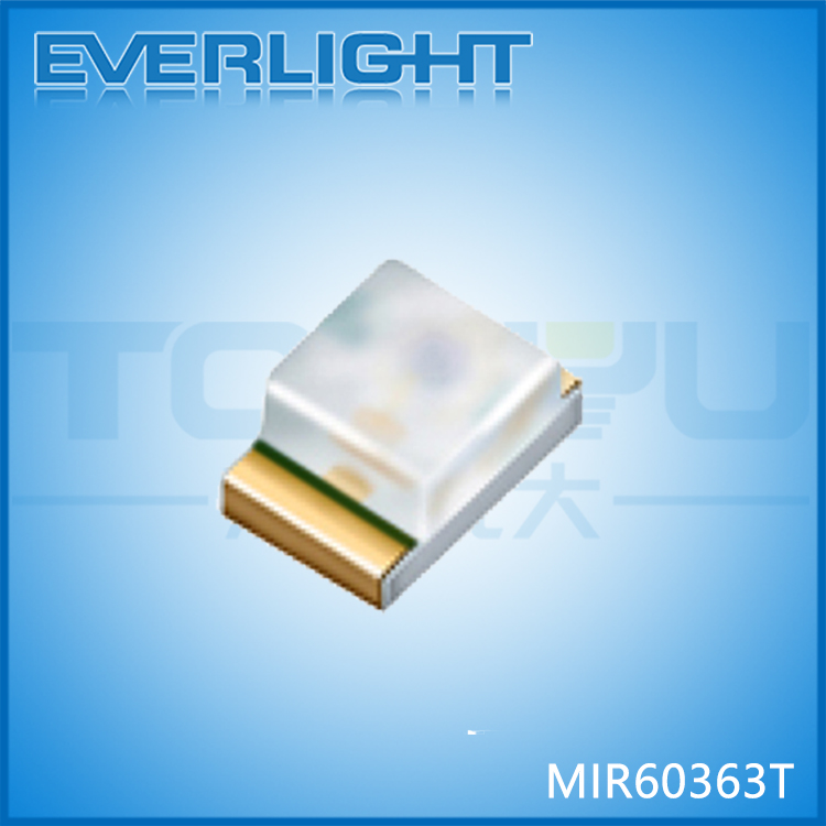 億光貼片紅外發射管MIR60363T(DY)是一個微型SMD封裝的紅外發射二極管,透明環氧樹脂模制而成。該器件與硅光電二極管和光電晶體管在光譜上匹配,通常搭配億光貼片紅外接收管MPT60363T(DY)使用,常用于光電直讀水表、驗鈔機等。